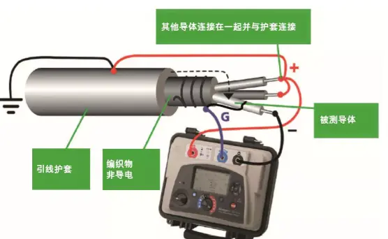 測(cè)量線芯和其他導(dǎo)體之間的絕緣: