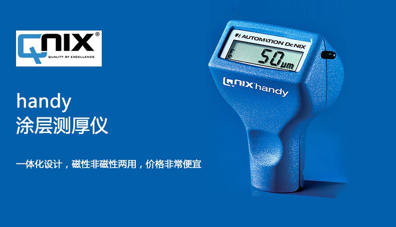 一體化設(shè)計(jì),磁性非磁性兩用,價(jià)格非常便宜。handy表面無任何按鍵,操作十分簡單,顯示精度5um,測量范圍20-500um,適合涂層較厚,對精度要求不是特別精確的情況下使用。